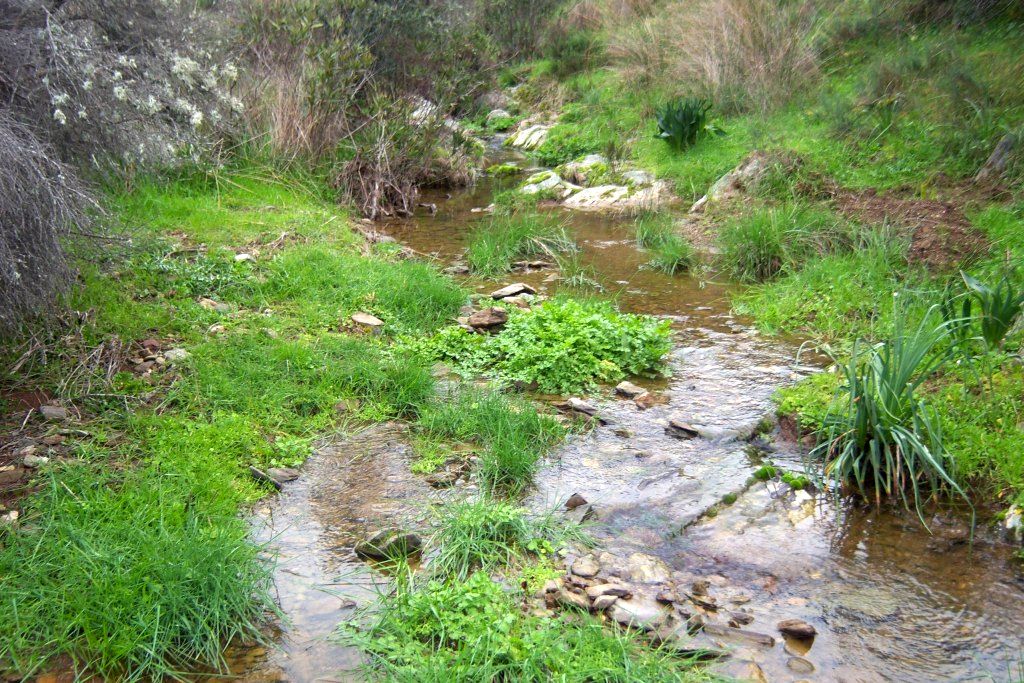 El sendero sigue brevemente el antiguo Camino de la Contienda dejando a ambos lados parcelas de olivar y pequeñas huertas en las que pueden apreciarse antiguas construcciones típicas de la zona como las «bujardas», ancestrales apriscos circulares que servían para el refugio del ganado.El sendero se desvía para seguir el camino de acceso a la Ermita de Rocamador que dejamos a la derecha mientras que nuestra ruta comienza el largo descenso en busca de la Rivera del Múrtigas. A lo largo del mismo, el perfil del horizonte se estrecha, encajonándose entre sucesivas series de cerros y promontorios, testigos de los procesos erosivos que durante millones de años han ido moldeando esta parte de Sierra Morena.